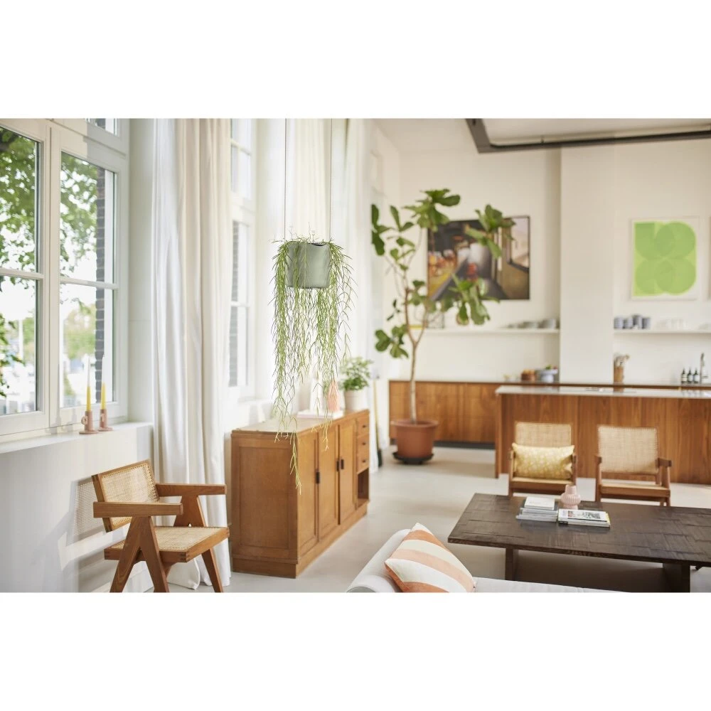 Ga de hoogte in, vergroen je huis met de b.for swing en laat jouw kamerplanten echt tot hun recht komen. De zachte vormgeving en kleuren van deze hang bloempot, zorgt ervoor dat hij goed op gaat in elk interieur. Combineer meerdere kleuren hang bloempotten en hang ze speels onder elkaar. Door de harmoniserende kleuren, kun je gemakkelijk een ton-sur-ton look creëren in jouw huis. Ook is hij van topkwaliteit, zodat jij er extra lang van kunt genieten. Deze bloempot is met liefde voor de natuur gemaakt; gemaakt van 100% gerecycled plastic, geproduceerd met windenergie en ook nog eens 100% recyclebaar.Inclusief hangkoord. Deze bloempot komt met een hangsysteem in een moderne stijl. De hang bloempot is met twee touwtjes te bevestigen aan het plafond en komt in twee maten; 50cm en 70cm. Je bepaalt dus hoe hoog je jouw nieuwe bloempot hangt. Daarnaast is deze verticale bloempot uitgerust met oortjes. Hierdoor kun je nog een b.for swing eronder hangen, wat zorgt voor een speels effect en nog meer ruimte om te vergroenen! Mix and Match Deze bloempot is in meerdere kleuren te verkrijgen, hierdoor kun je zelf een mooi ton-sur-ton effect creëren bij jou thuis! Combineer bijvoorbeeld deze hangend bloempot in de kleuren stone green en leaf green, waardoor je een gradiënt effect maakt. Eenvoudig water gevenHet is makkelijk om je planten water te geven in de b.for swing, omdat deze bloempot voorzien is van een schenktuit. Plaats hier eenvoudig de schenktuit van de gieter en gieten maar! Ben je nu toch niet zo’n held met planten? Niet getreurd! In deze verticale bloempot past onze self-watering insert van 17 cm. Je planten water geven wordt hiermee helemaal een fluitje van een cent. De watermeter geeft aan wanneer je het water moet bijvullen en de rest wordt voor je gedaan.