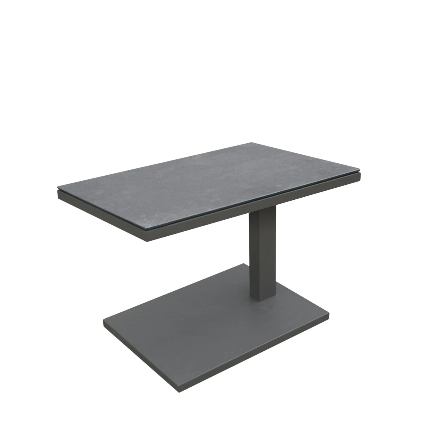 Een bijzettafeltje is altijd handig om bijvoorbeeld je drankje of boek op te bewaren. De MARBELLA bijzettafel is voorzien van een keramisch tafelblad welke in hoogte verstelbaar is. Het frame is gemaakt van aluminium. De tafel heeft een afmeting van 60 x 740 x 47-67 cm.