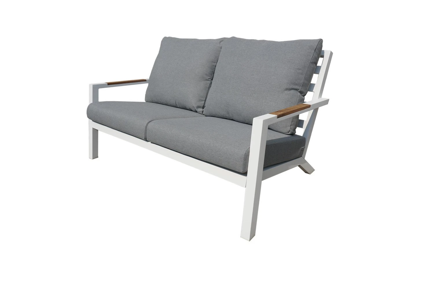 Met de 2-zitsbank uit de RIO serie van Royal Seasons weet je zeker dat je goede kwaliteit in de tuin neerzet. De RIO serie is in het wit uitgebracht en de bank is standaard uitgevoerd met grijze kussens. Deze 2-zitsbank is gemaakt van aluminium. Aluminium is licht in gewicht en bovendien erg sterk. Daarom wordt aluminium veel gebruikt in de productie van tuinmeubelen. De houten accenten zijn gemaakt van teak hardhout. Tevens is de tuinset gemakkelijk schoon te maken en dus zeer onderhoudsvriendelijk!